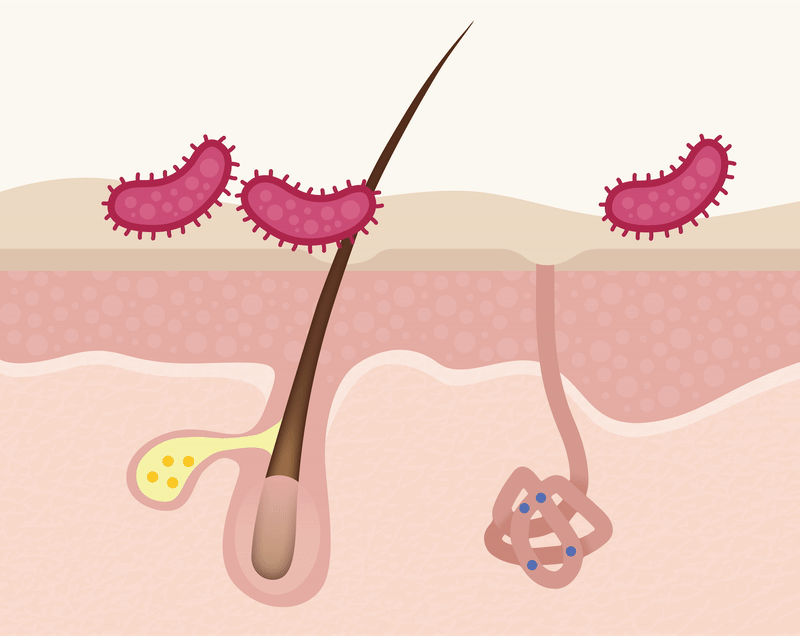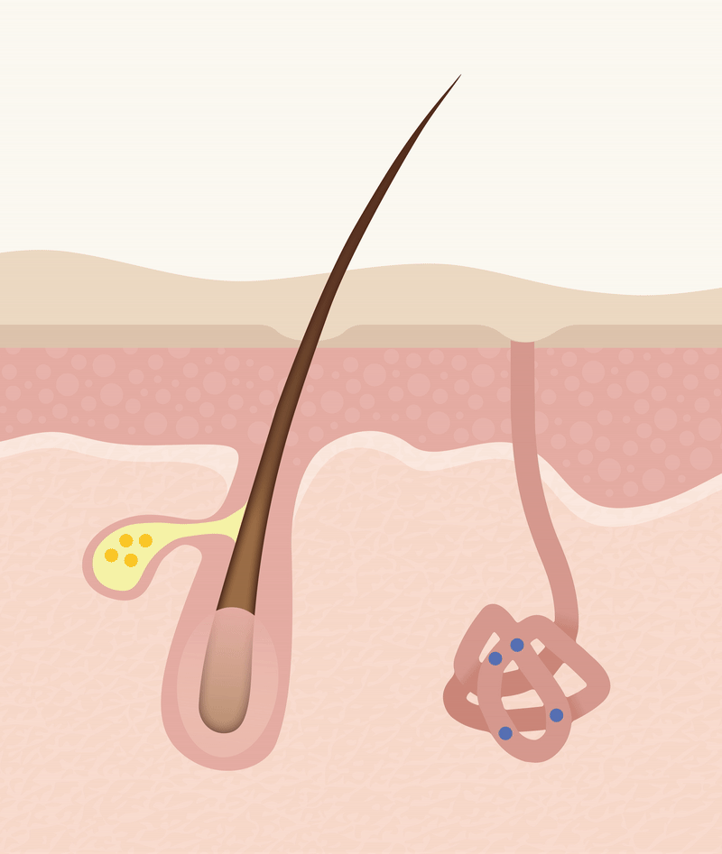 When we sweat, skin bacteria feed on the mixture of secretions from our sweat glands and produce byproducts that smell bad—this is what we know as body odor. Odorous compounds are most concentrated in areas with hair that are moist and warm, like the vulva, booty, and armpits, because this is where odor-causing bacteria thrive best.