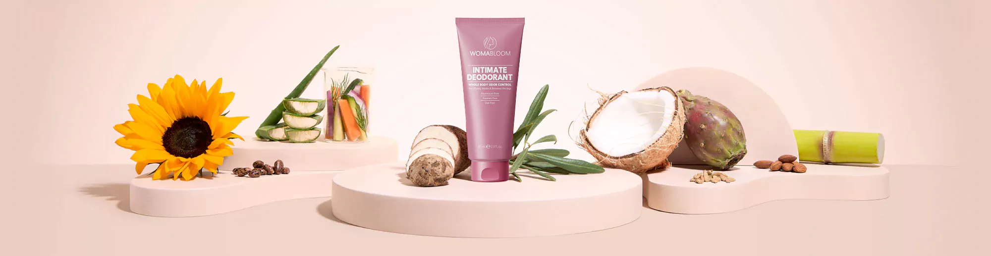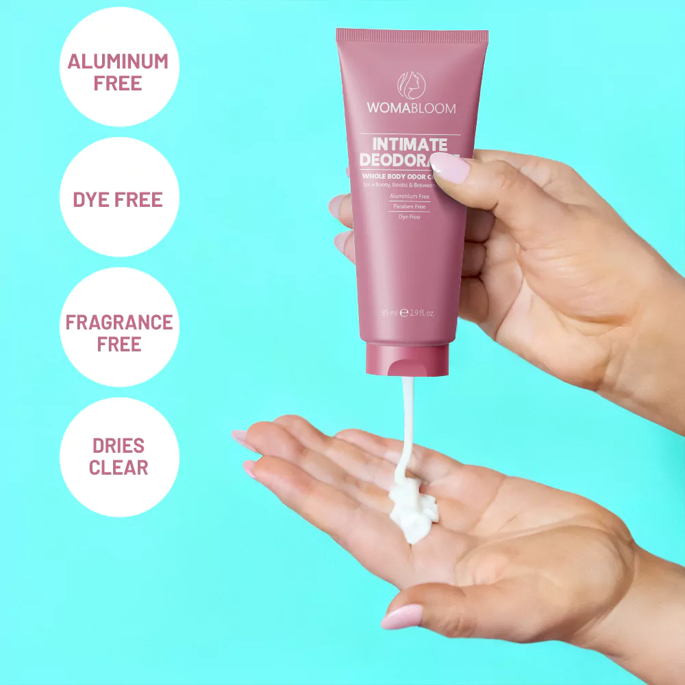 Womabloom Intimate Deodorant is a cream deodorant designed for external application on armpits, boobs, booty, between the legs, and anywhere else odor control & moisture control is desired.